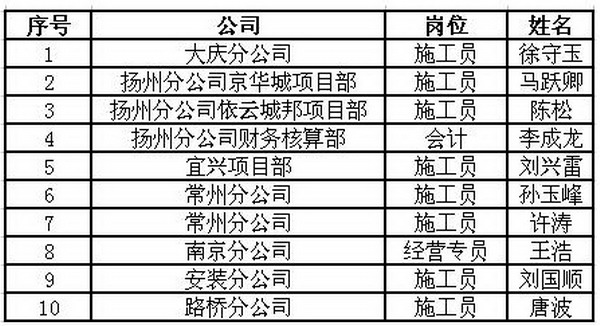 公司2010年第一批實習生轉正